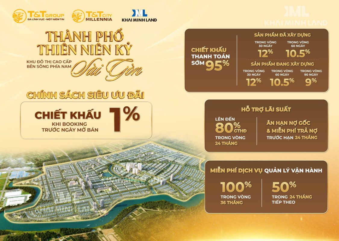 - Đặc biệt, T&T City Millennia nằm đối diện cảng Hiệp Phước và liền kề với nhiều khu đô thị lớn như: GS Metro City, Phú Mỹ Hưng. Vì vậy, mặc dù dự án nằm tại Long An nhưng là nơi tuyệt vời cho cư dân TP HCM an cư và đầu tư